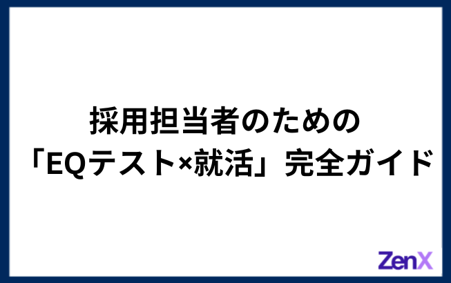 Zen X株式会社では、EQ測定を含む包括的なタレントアセスメントツール「ZenTest」を提供しています。スキル・行動特性・EQなどを多面的に可視化し、採用判断の精度向上を支援します。また、採用戦略の設計から実務代行まで対応する「ZenStrategy」により、採用プロセス全体の最適化も可能です。採用でお悩みの企業様は、ぜひ一度無料相談をご活用ください。